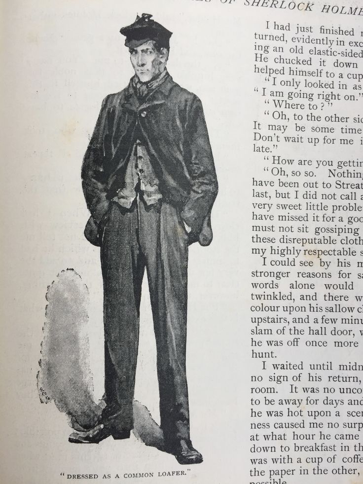 Dark brown suit, black bowler hat: Sidney paget illustrations